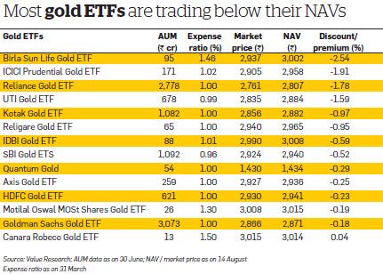 The NAV of the ETF is not always to be ignored. In some rare cases it can be the basis of calculating the gold savings fund’s NAV. If the underlying ETF is not traded at all for a day, the NAV computation is based on ’fair valuation’. Though the method varies among fund houses, the most common practice is to use the underlying scheme NAV for calculation. This means the NAV calculation of gold savings fund can happen based on the NAV of gold ETF on some day and the market price of gold ETF for some other day (which may be trading at a discount or premium to its NAV).