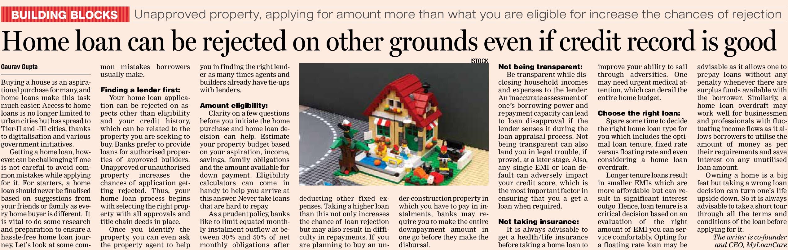 Loans - Home Loan Can Be Rejected On Other Grounds Even If Credit Record Is Good