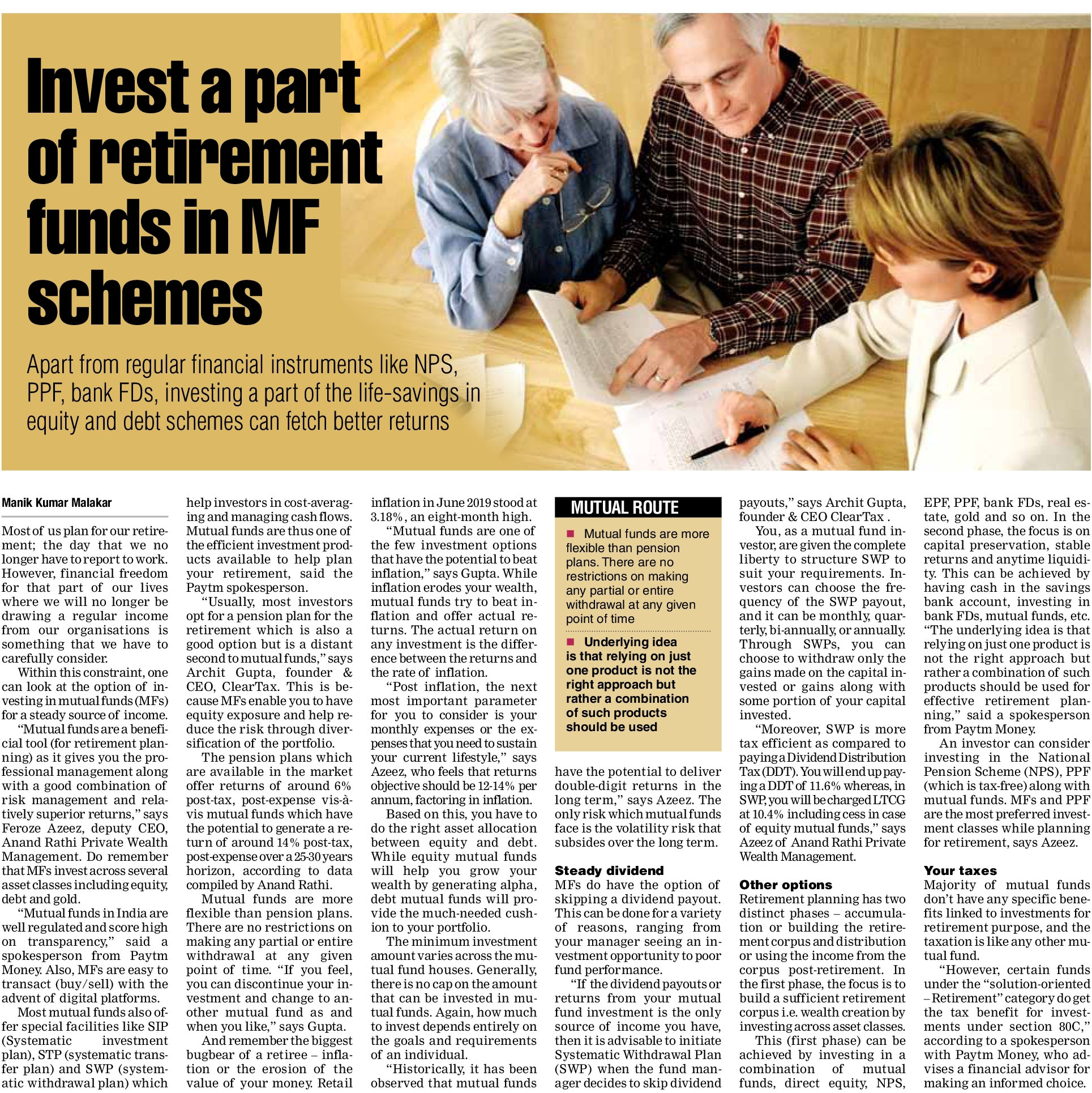 Mutual Funds - Invest A Part Of Retirement Funds In MF Schemes