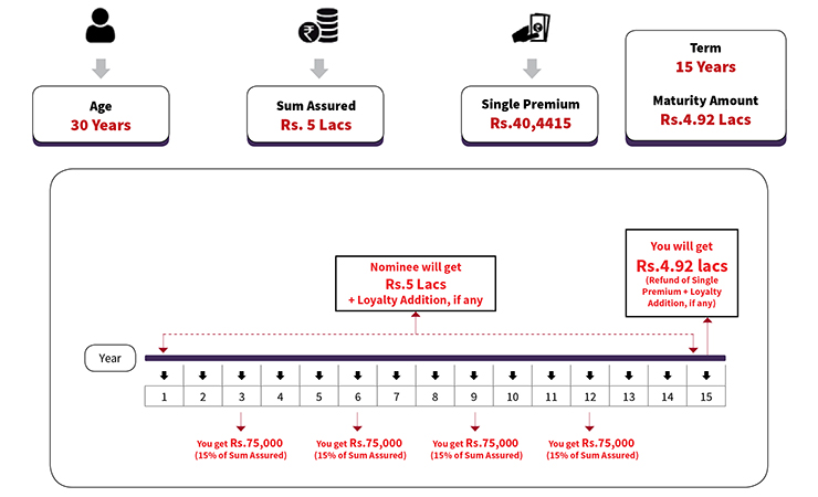 • On maturity, customer gets back the Single premium paid along the loyalty addition, if any